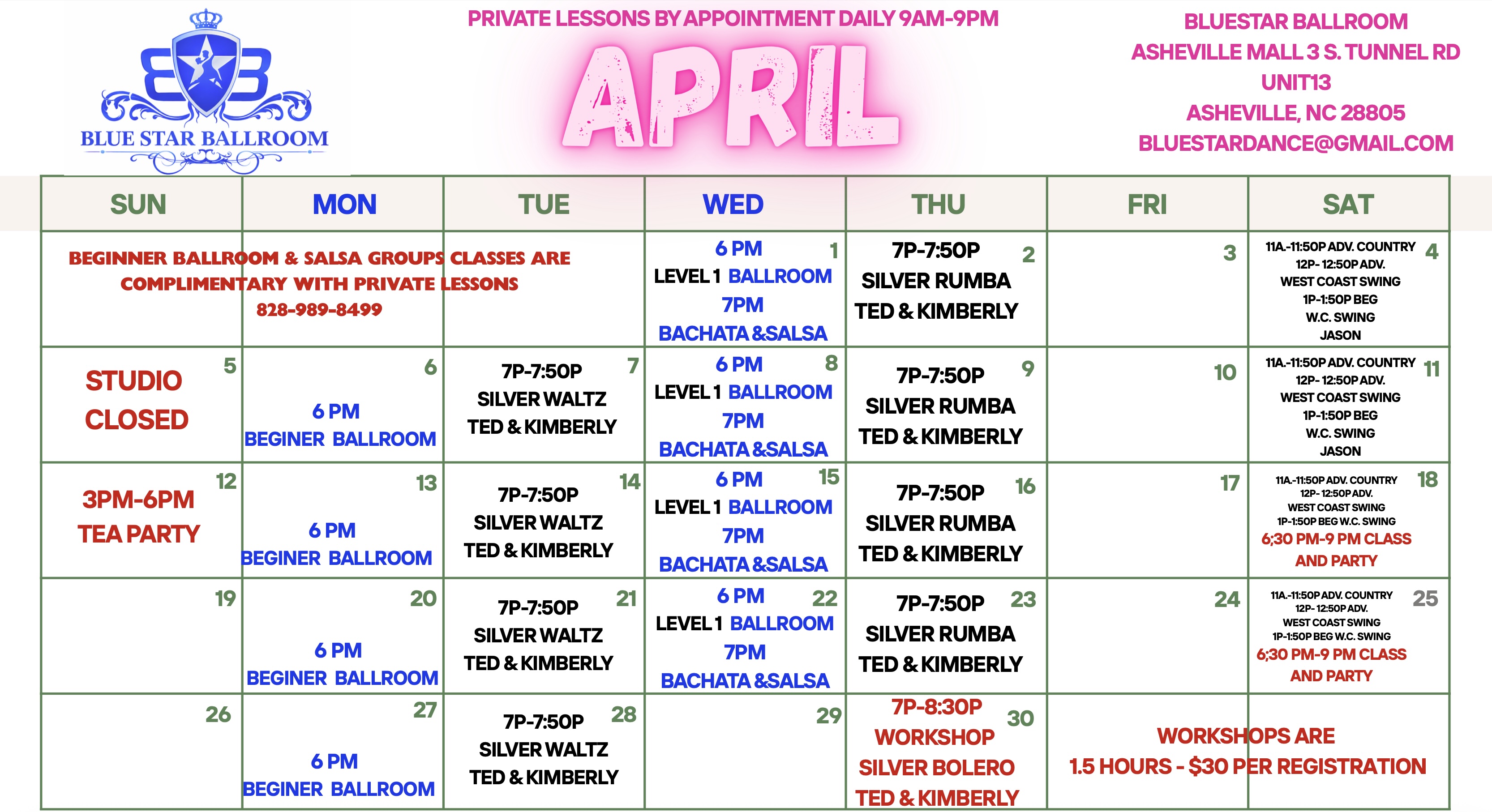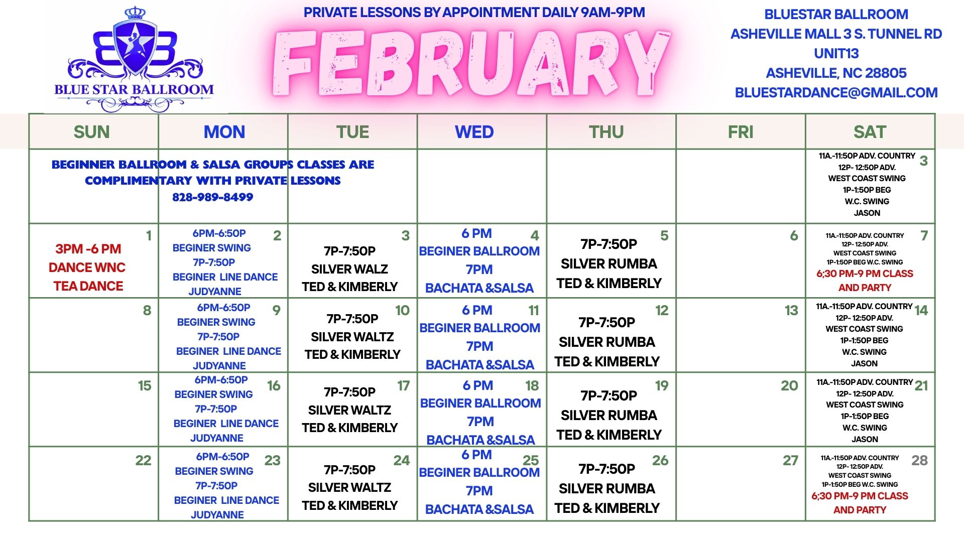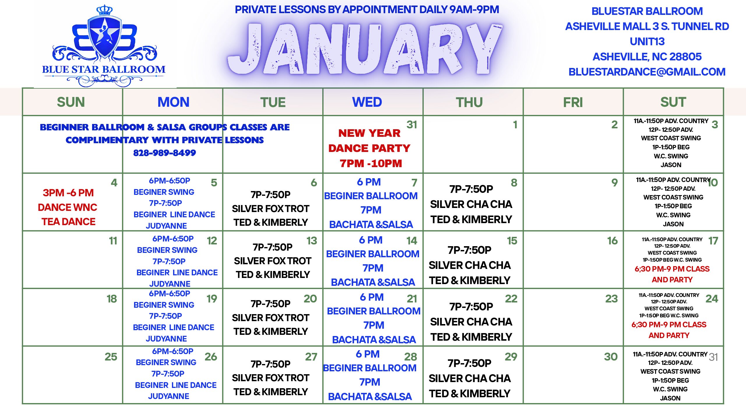 Ballroom, Latin, Swing & Country Classes in Asheville Mall